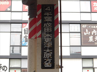 | 快速線上りホームの方面案内看板です。緩行線とは異なり、県内の主要駅が記載されています。 | 快速線下りホームの方面案内看板です。茂原ではなく大原?という疑問の答は、乗換駅だからということなのでしょうか。 | |