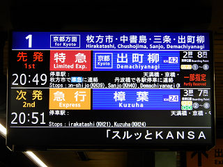 近畿地方の列車案内。続いては、京阪電気鉄道の新型液晶式発車案内をご紹介します。 | ||