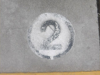 ホームに直接印字された乗車位置案内です。摩擦により表示はかなり掠れています。 | ホームにプリントされた乗車位置案内です。前述の案内を上書きしています。 | |