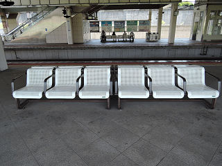 | ホームに設置されたFRP製椅子です。前述のものとは若干様式が異なり、設置が古かったのか2025年時点で現存していません。 | 前述に代わって設置された椅子です。転落事故防止の配置は、関東にもじわじわと浸透しています。 | |