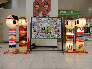 | 日本刀の原型とも言われる舞草刀です。平安時代中期に誕生し、奥州藤原氏の勢力拡大にも大きく貢献しています。 | 東北を代表する民芸品、こけしです。当駅が最寄の遠刈田温泉は、三大こけし発祥の地として知られています。 | |