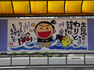 | 中国・四国地方の看板。続いてはとさでん交通の停留所に設置された、地元出身漫画家のイラスト入り名所案内看板をご紹介します。。 | ||