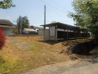 | 切符売場跡。四国の駅としては珍しく、閉鎖された窓口は板で塞がれています。 | 広めの待合室。長椅子が2脚設置されるのみで、閑散としています。 | |