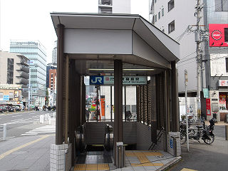 | 浄正橋交差点北東の1号出入口。エレベータが併設されています。交差点の向かいには阪神福島駅の入口が位置しますが、地下で直接連絡するほどの需要はないようです。 |