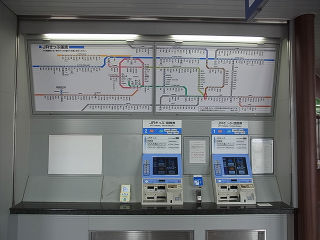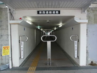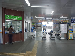 | 旧駅舎の地下道を再利用した自由通路。中央には開業以来のレンガ積みの構造が残っています。 | 切符売場。タッチパネル式の券売機が2台設置されています。 | |