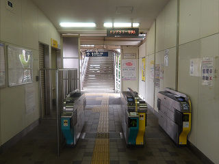 | 豊橋方面改札。改札機は2台。うち1台はICカード専用機です。 | 豊橋方面。ホームは相対式2面2線。跨線橋側面の駅名表示は、通過列車運転手に向けてのものでしょうか? | |