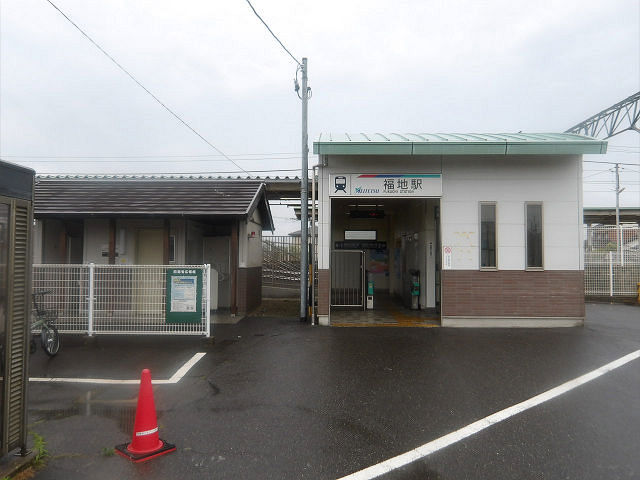 | 列車は高架を降りると南に方向を変えて進み、福地に到着します。周囲は田園風景が目立つ長閑な佇まいですが、近年は住宅も増加しており、新世紀に入って利用客は倍増しています。 |