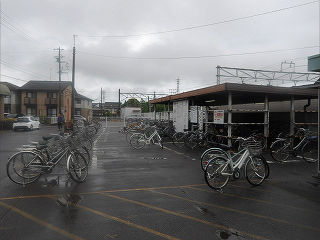 | 駅前の駐輪場。上屋下から溢れた自転車の数に、旺盛な通勤通学需要が窺えます。 | 改札口。改札機は2台。間口いっぱいに設置され、増設余地はありません。 | |