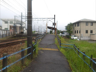 | 下り蒲郡方面乗場入口。駅舎のない無人駅で、ホームにはスロープで連絡します。 |