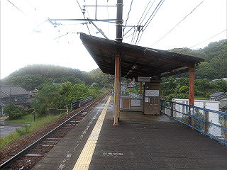 | 蒲郡方面。ホームは1面1線。交換駅化も睨んだ構造ですが、活用されることはなさそうです。 | 吉良吉田方面。訪問日は週末でしたが、過去には団体客も多く訪れた広いホームに全く人影はなく、ただただ閑散としていました。 | |