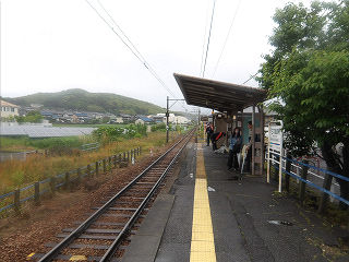 | 駅北西より全景。駅舎のない無人駅で、ホームに待合所が設置されています。 |