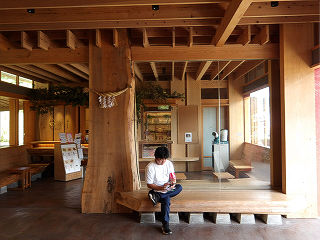 | 切符売場と改札口。簡易型の券売機が1台。有人窓口は2025年に閉鎖されています。 | 駅舎内の物販店。地元の職人が手仕事で作り上げた工芸品等を販売しています。 | |