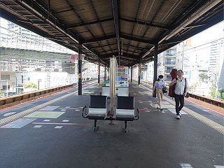 高架駅です。主要幹線道路「なにわ筋」に面しており、地上を走る貨物線の特急通過時には激しい渋滞を引き起こしています。 |