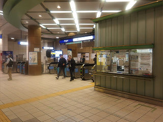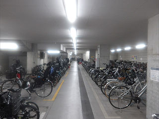 | 地下の駐輪場。オフィス街の立地でこれほど自転車利用があるとは、少々意外です。 | 切符売場。券売機が3台とICカードチャージ機が1台設置されています。 | |