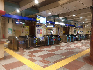 | 切符売場。券売機が4台とICカードチャージ機が1台設置されています。 | 改札口。ずらり並んだ改札機は11台。約半数がICカード専用機です。 | |