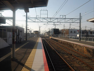 | 列車は北西に進み、中八木に到着します。周囲は田畑も目立つ、どちらかというと長閑な雰囲気が漂っていますが、ライバルとなるJR駅からは離れているため、見た目ほど利用は少なくないようです。 |