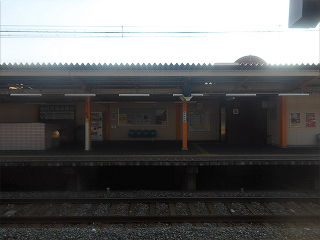 | 山陽姫路方面。ホームは相対式2面2線。緩く右にカーブしています。 | 下りホーム。優等列車が通過する中間駅としては上屋は長く、当駅にかける期待が窺えます。 | |
