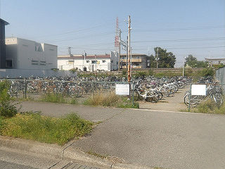 | 少し北に位置する駅前広場。路線バスが乗り入れています。 | 踏切を挟んで東に位置する駐輪場。通勤通学利用で賑わう様子が窺えます。 | |