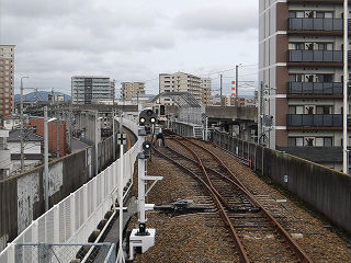 | 路線始端方面。ホーム端にも出入口が設置され、JR勝川駅への最短経路となります。 | 路線始端側には留置線が設置され、車両検査も行われています。 | |
