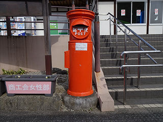 | 駅前に設置された丸ポストです。レトロなお城風の駅舎に良く似合います。 | 駅東口の丸ポストです。旧脇野田駅前から移設されたのでしょうが、近代的な駅舎前ではどうにも居心地が悪そうです。 | |