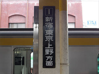 | JR東日本の看板。続いては総武本線稲毛駅ホームのホーロー引き方面案内看板をご紹介します。 | ||