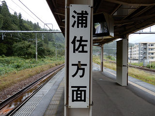 | ホームに設置された金属製の方面案内看板です。六日町でも越後湯沢でもなく浦佐なのは、最寄の新幹線停車駅というわけでしょうか。 | 反対方向のプラスチック製方面案内看板です。先の例からすると、新潟でなく長岡でも良さそうですが...。 | |