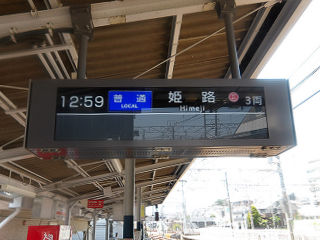 | 近畿地方の列車案内。続いては、山陽電気鉄道の新型液晶式発車案内をご紹介します。主に優等列車が通過する中小駅で、近年その勢力を拡大しています。 | ||