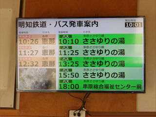 | 東海地方の列車案内。続いては、旧国鉄明知線を継承した第三セクター、明知鉄道の発車案内などをご紹介します。 | ||