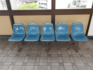 | ホームに設置されたFRP製の椅子です。開業時に設置されたようで、大町以西の駅では標準様式です。 | ホームに設置された金属製の椅子です。駅内の椅子は、ホーム待合室、改札内待合所も含めてこれに統一されているようです。 | |