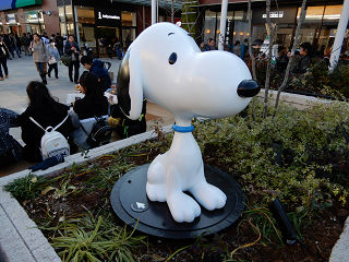 | 駅前に設置されたスヌーピー像です。期間限定で六本木に開館したスヌーピーミュージアムでしたが、盛況により当地に移転開業となりました。 | 有人改札窓口に設置された東急線のキャラクター「のるるん」です。年末という時期柄、サンタクロースのコスプレバージョンです。 | |