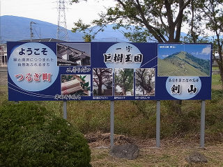 | ホームに設置された名所案内看板です。当駅のホームは大洲、伊予市境に位置し、看板にも両市の名所が描かれています。 | 所在地つるぎ町の名所案内看板です。合併した3町村の名産に加えて、町名の由来でもある剣山が紹介されています。 | |