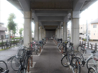 | 高架下の駐輪場。休日でしたが、同じ県内の城北線とは異なり、それなり活気が感じられます。 | 駅入口。ICカード専用改札機がお出迎えです。一応切符売場らしき建物も設置されています。 | |