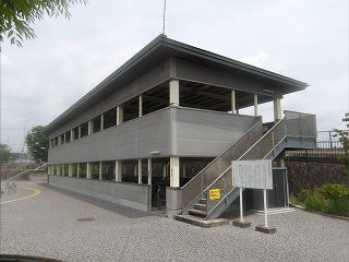 | 駅前の駐輪場。2階建てでキャパは十分ですが、道路を挟んで西にも駐輪場が設置されています。 | 切符売場と改札口。営業は午前中と夕方のみで、無人時間はシャッターが下ろされています。 | |