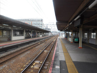 | 2階改札口。改札機は5台。見るからに増設された様子が窺えます。他に3階にも改札口が設置されています。 | 高蔵寺方面。ホームは相対式2面2線。当駅折り返し列車は、一旦引き上げ線を経由して転線しています。 | |