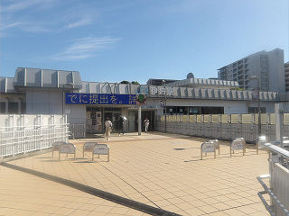 | 駅東口。ペデストリアンデッキは、手前の大規模ショッピングモールに直結しています。 | 切符売場。券売機が3台と指定席券売機が2台。うち1台は対話型で、みどりの窓口は閉鎖されています。 | |