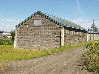 | 駅前に残る農業倉庫。道内有数の穀倉地帯だけに、米をはじめ多くの農産物が貨物列車で発送されたことでしょう。 | 手作りの大きな机と椅子の設置された待合室。出札、荷物の窓口は閉鎖されています。 | |