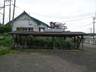 | トタン屋根の木造駅舎です。入口部分は後から増設されたように見受けられます。 |