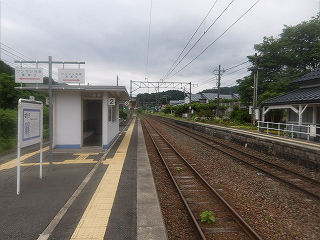 | 入口に大きな庇を持つ木造駅舎です。JAの農産物直売所が同居しています。トタン屋根は言うまでもなくIGRカラーでしょう。 |