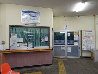 | 駅前の駐輪場。週末ということでか、利用状況は低調でした。 | 切符売場と改札口。日中は委託の窓口が営業しています。券売機は設置されていません。 | |