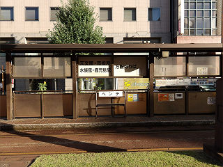 | 2系統乗場郡元方面。ホーム幅は狭く、車椅子の利用はできません。 | 鹿児島駅前方面乗場。各ホーム上屋下には、折り畳み式の長椅子が設置されています。 | |