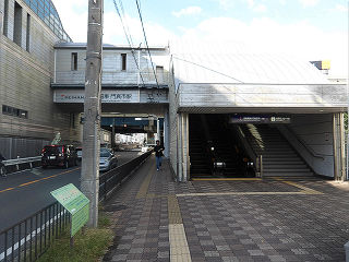 | 橋上駅舎の南口。主要駅らしく駅前広場も整備されています。大阪モノレール門真市駅とはペデストリアンデッキで連絡します。 |