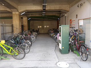 | 高架下の駐輪場。天井、側壁とも隙間はなく、雨風対策は万全です。 | 切符売場。仕様違いの券売機が2台。定期券発売機はありません。 | |