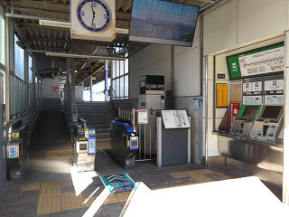 | 東切符売場。ICカードチャージ機兼乗車駅証明書発行機が1台設置されています。 | 東改札口。改札機は3台。中央が車椅子対応で若干幅が広くとられています。 | |