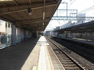 | 新設された西口。券売機が2台と改札機が2台設置されています。 | 私市方面。ホームは相対式2面2線。幅は比較的広く確保されています。 | |