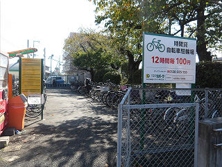 | 駅前の駐輪場。上屋も側壁もなく、大手私鉄の都市近郊駅とは思えない長閑さです。 | 切符売場。中小駅で増殖中のICカードチャージ機兼乗車駅証明書発行機が設置されています。 | |