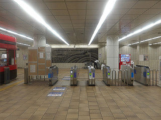| 改札口。改札機は4台。当駅にもICカード専用機はありません。 | 西神中央方面。ホームは相対式2面2線。地下区間では少数派です。 | |