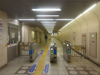 | 北切符売場。券売機を定期券発売機が各2台設置されています。 | 北改札口。改札機は6台。立地の制約か、2方向に分けて設置されています。 | |