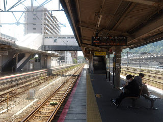 | 改札口。改札機は3台。頭上にはLED式の発車案内が設置されています。。 | 三原方面。ホームは2面3線。南側には留置線が多数設置され、夜間滞泊も行われます。 | |