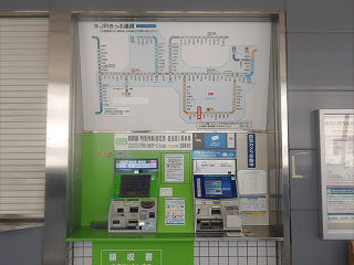 | いかにも裏口めいた南口。学校はこちら側に位置するため、利用は少なくありません。 | 切符売場。タッチパネル式の券売機と対話型指定席券売機が各1台設置されています。 | |