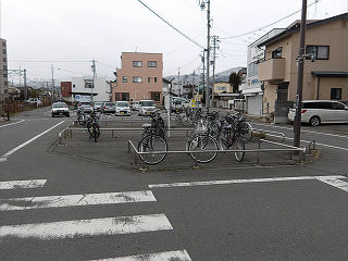 | 北口駅前の駐輪場。年末の学休期間とあって、閑散としていました。 | 切符売場。タッチパネル式の券売機が1台。キャッシュレス決済にも対応しています。 | |